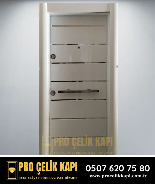 • Dayanıklılık: Çelik kapılar, diğer kapı türlerine göre çok daha uzun ömürlüdür. Doğru bakımla 30 yıldan fazla kullanılabilirler.